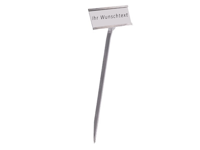 Pflanzenschild mit Gravur 600 mm Silber, Text Schwarz