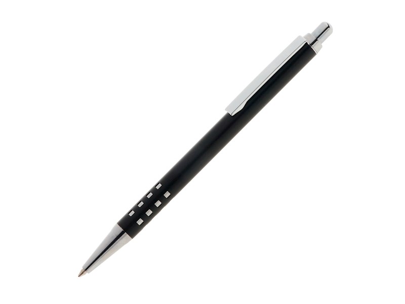 Lochdesign für hohe Griffigkeit - Kugelschreiber, Schwarz, Caro, Metall, Schreibfarbe: Blau