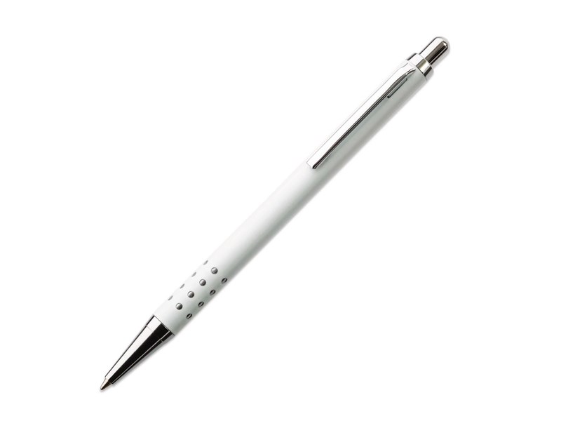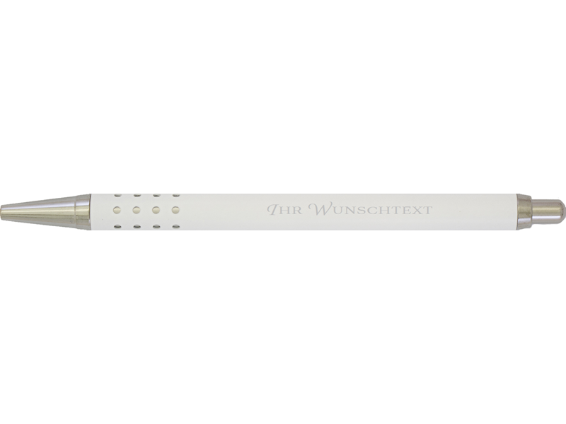 Lochdesign für hohe Griffigkeit - Kugelschreiber, Weiss, Alu-Luna, Metall, Schreibfarbe: Blau